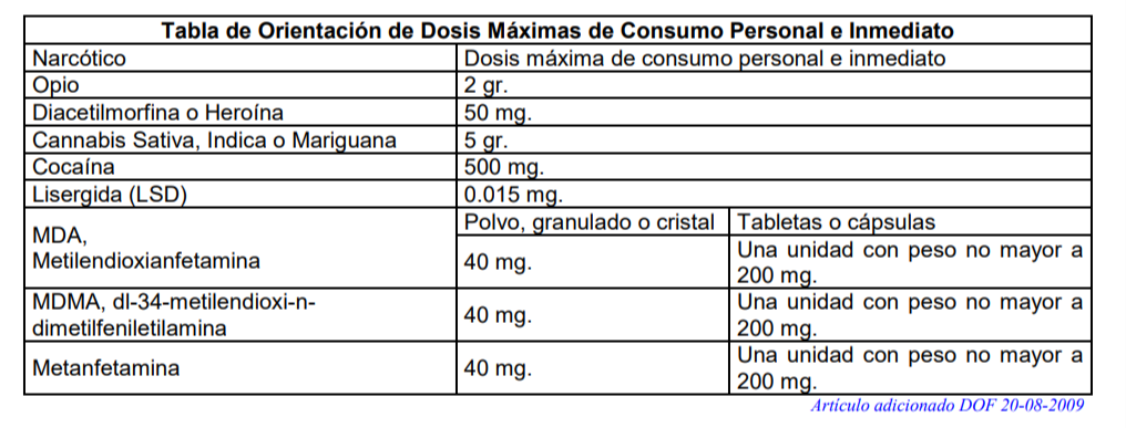 Tabla de Dosis Máximas de Consumo Personal.